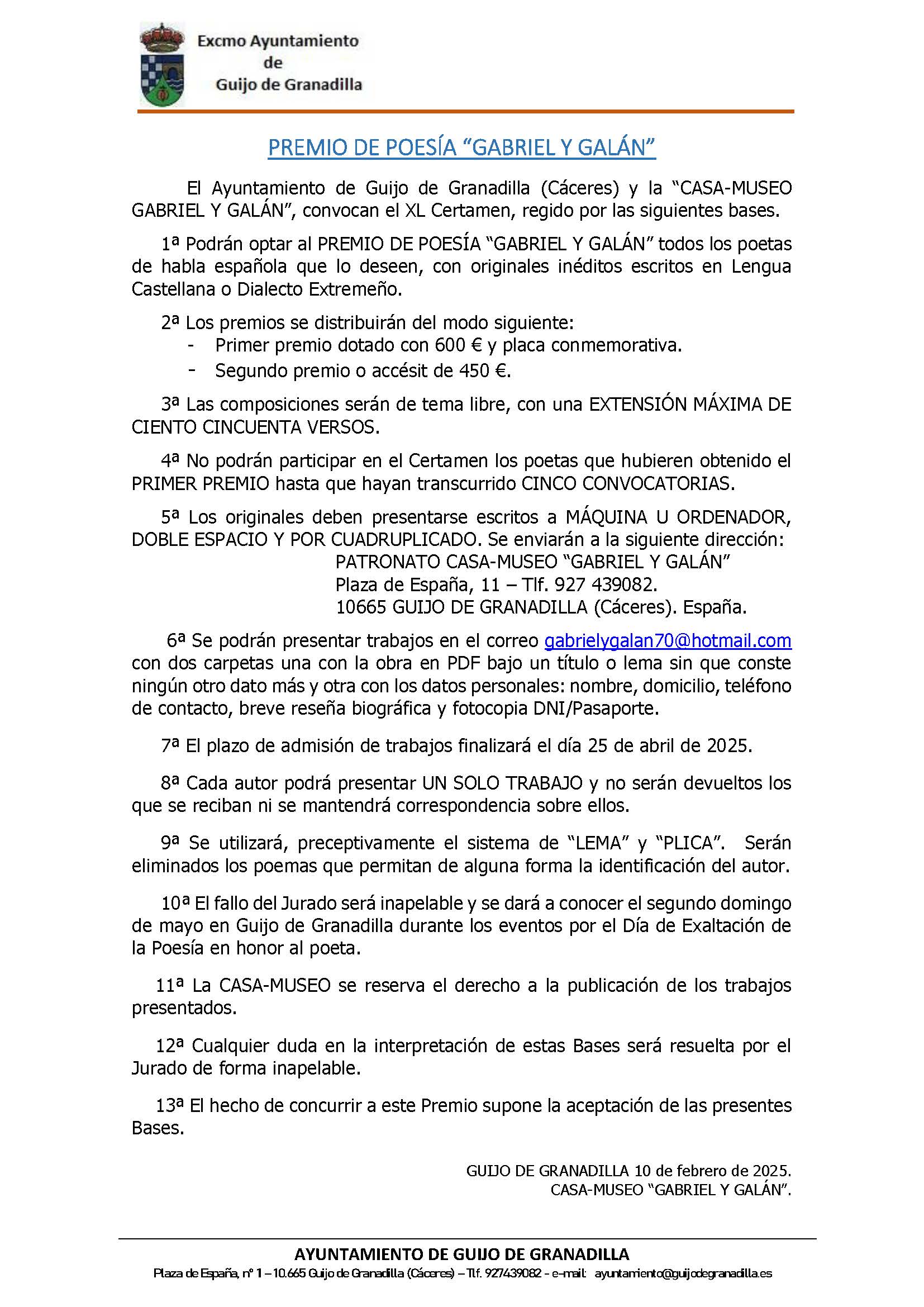 Convocatoria del XL Certamen de poesía Gabriel y Galán